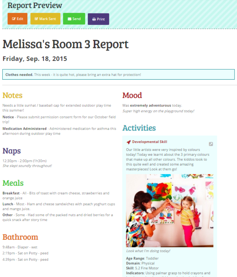 How do I see the details of my child’s day?